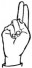 На ћирилици написано ШАЛЕ БЛАГОЈЕВИЋ састоји се из 14 слова [?]. Исписано ћириличном једноручном азбуком за глувонеме: